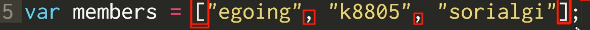 대괄호로 시작해서 대괄호로 끝나고 값과 값은 콤마로 구분해 주면 배열