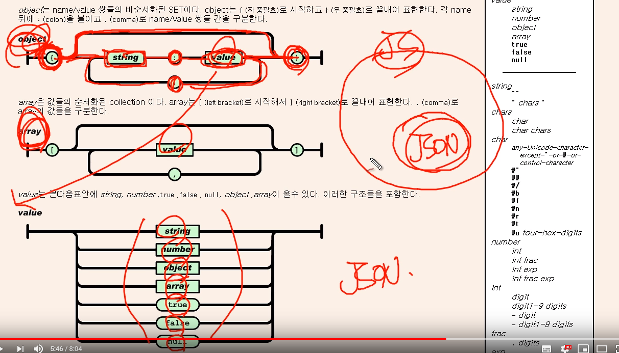 json 의 문법은 javascript를 쓴다.