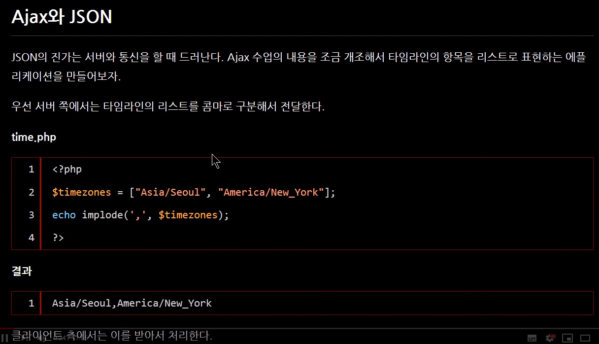 timzones라는 배열에 변수를 남았다. timezones라는 변수가 가리키고 있다. implode라는 함수를 호출(2개의 인자를 갖는다.) 배열의 원소들을 묶어서 합쳐서 하나의 문자로 만들어 주는데 묶을때 각각의 원소와 원소를 ,로 구분해 준다. 이것은 원소의 내용을 마치
