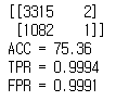 TPR(sensitivity,recall) = 맞춘양성(0)/실제양성(0) = TP /TP + FN