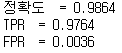 FPR = 틀린음성/실제음성 = FP / FP + TN