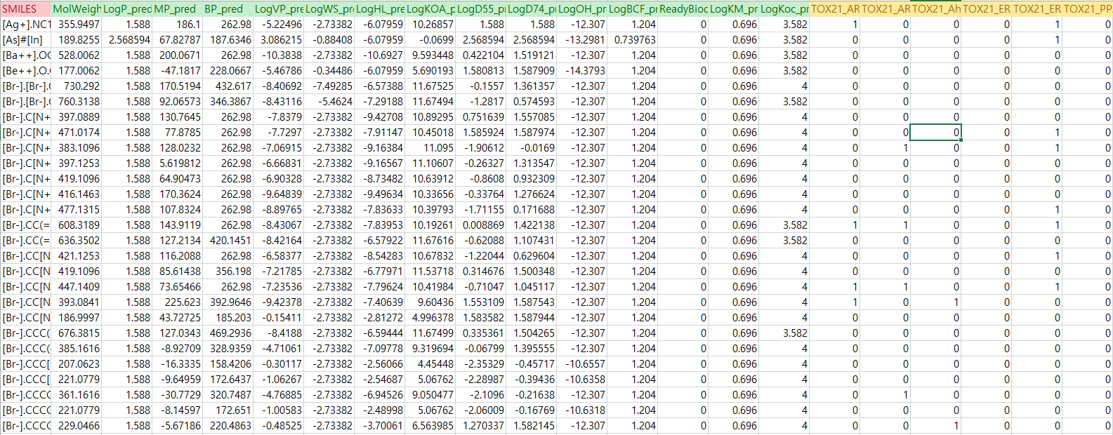 - LogBCF, ReadyBiodeg,LogKM, LogKOC