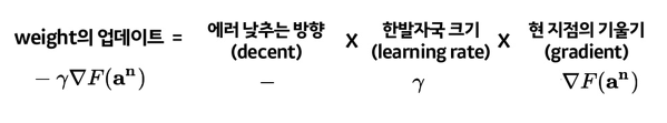 현재 네트워크의 weight에서 내가 가진 데이터를 다 넣어주면 전체 에러가 계산된다. 거기서 미분을 하면 에러를 줄이는 방향을 알 수 있다. 이걸 계속 반복해서 학습을 하는 것.