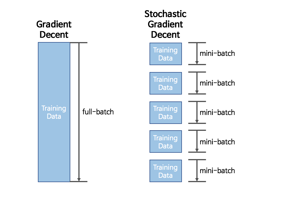 최적값을 찾아 나가기 위해서 한칸 전진할 때마다 모든 데이터 셋을 넣어주어야 한다는 문제.
