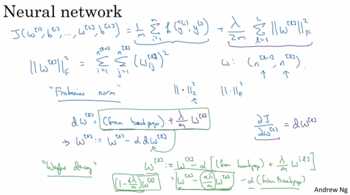 행렬 w^[l]에서 αλ/m 곱하기 w^[l] 만큼을 빼준 것이죠