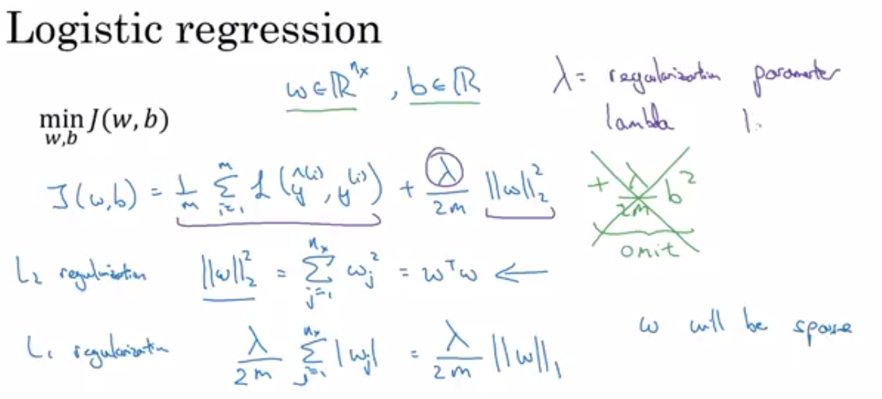 마지막 세부 사항으로 여기 있는 λ를 정규화 매개변수라고 부릅니다 개발 세트 혹은 교차 검증 세트를주로 사용합니다