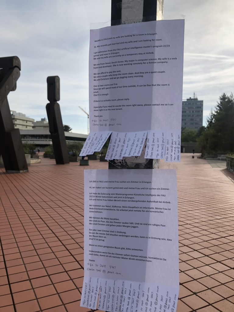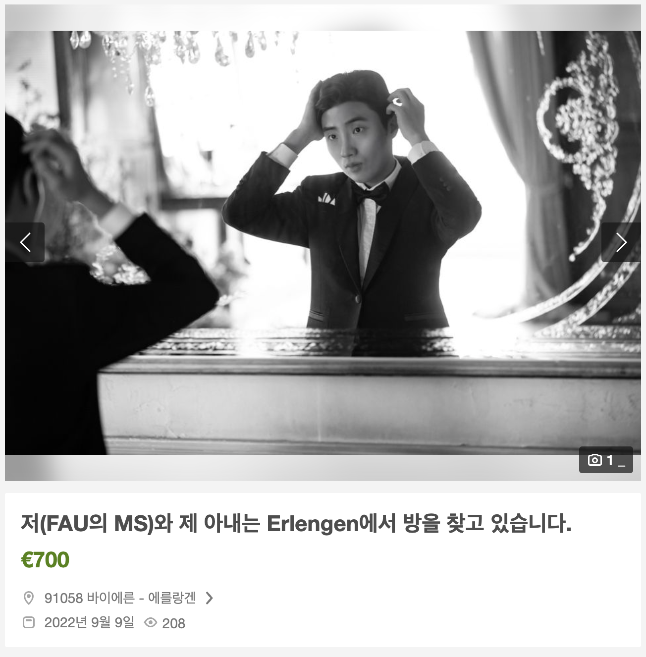 그렇게 월요일, 화요일 수요일을 보낼동안 다른 방이 혹시 있는지 알아보았지만 .. 에어랑엔에는 정말 전혀 방이 없었습니다. 새로 나오는 방도 바로바로 사람들이 채가는 상황이였습니다.