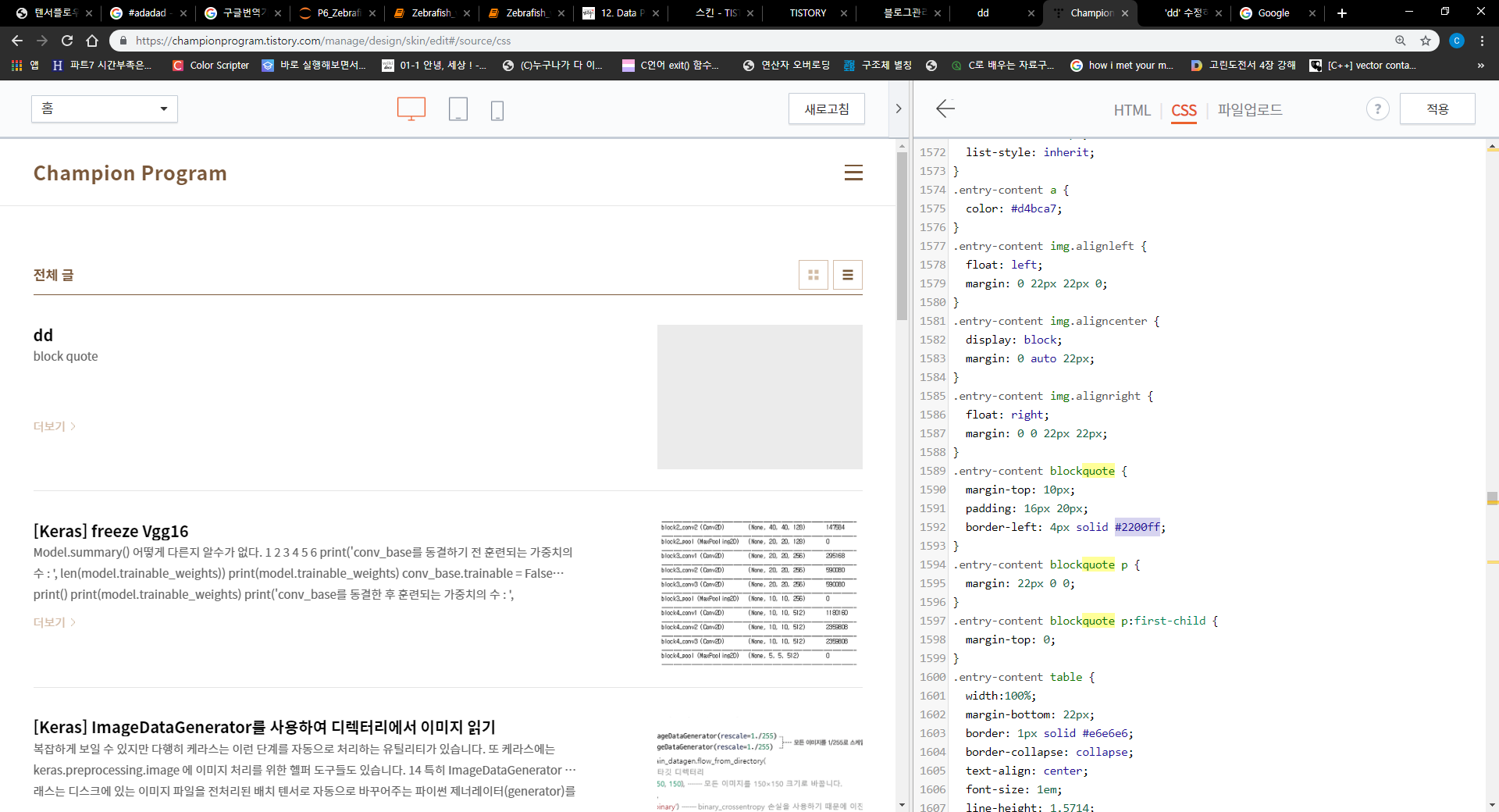 먼저 스킨마다 CSS코드가 달랐다. 그렇기에 구글링한 자료와 똑같이 하려고 해도 그 코드를 찾을수 없었다.