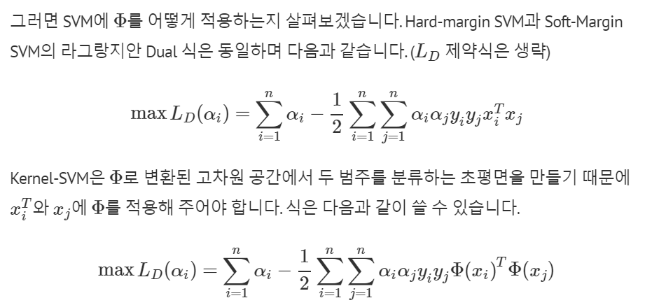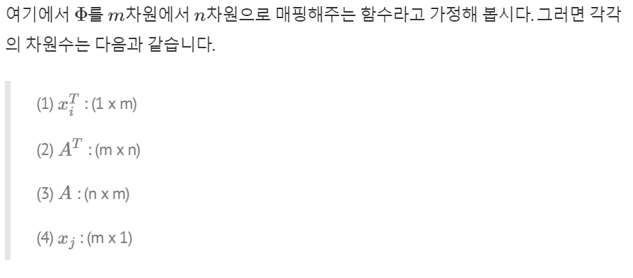 가장 중요한 것은 input Space와 Featuer Space 사이를 매핑해주는 함수 Φ