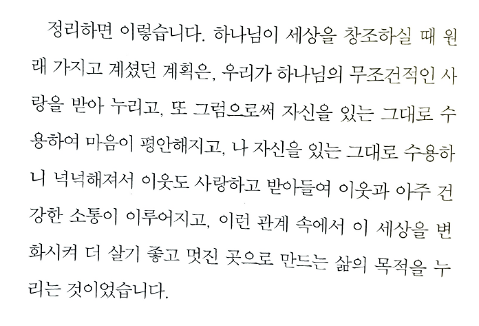 1. 하나님이 세상을 만드셨을 때의 원래 계획을 듣고 난 후 당신의 생각은 어떠합니까? 당신이 이러한 온전한 관계들을 맺고 있다면, 삶이 어떻게 달라질 수 있을 것이라고 생각하십니까?